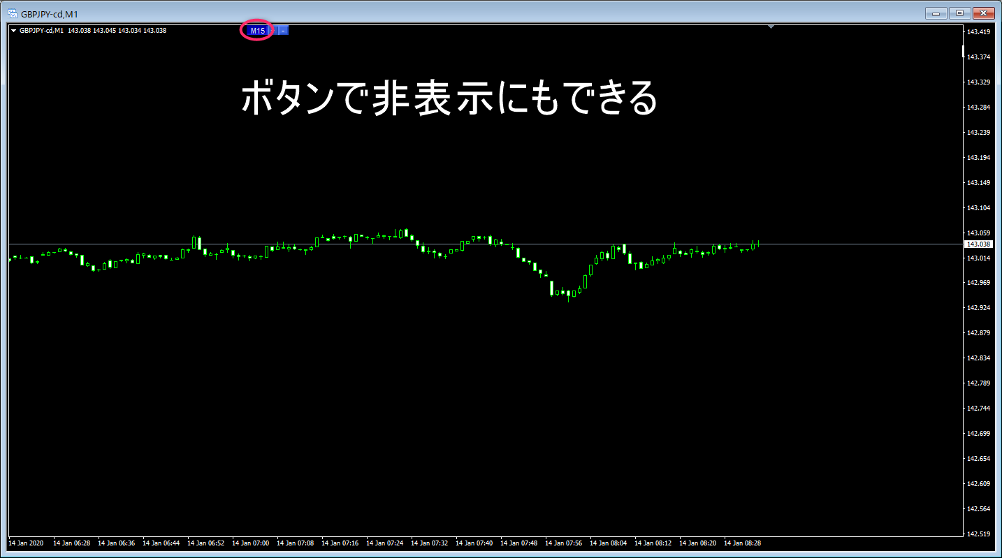 表示が邪魔な時にワンクリックで「M1-M30」「H1-D1」「W1-MN」のグループ毎に表示を消すことができます。