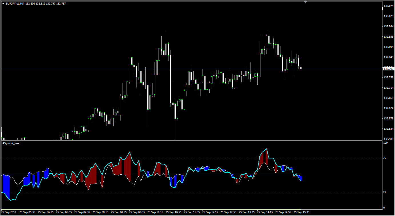 下記例はクロス円のEURJPY、水色がEUR、赤色がUSD、白色がJPYになります。
