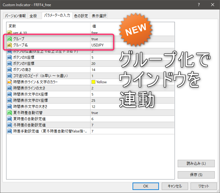 さらに、グループ化機能を追加してウインドウを連動して過去検証ができるようになりました。