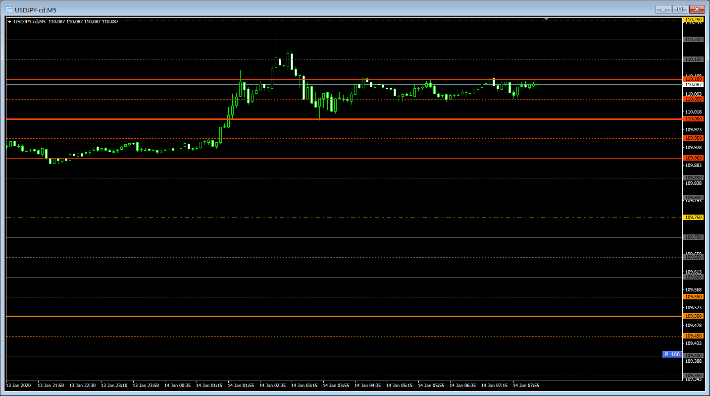 よくあるチャートに100pips・10pips・5pips単位で価格線を表示するツールです。