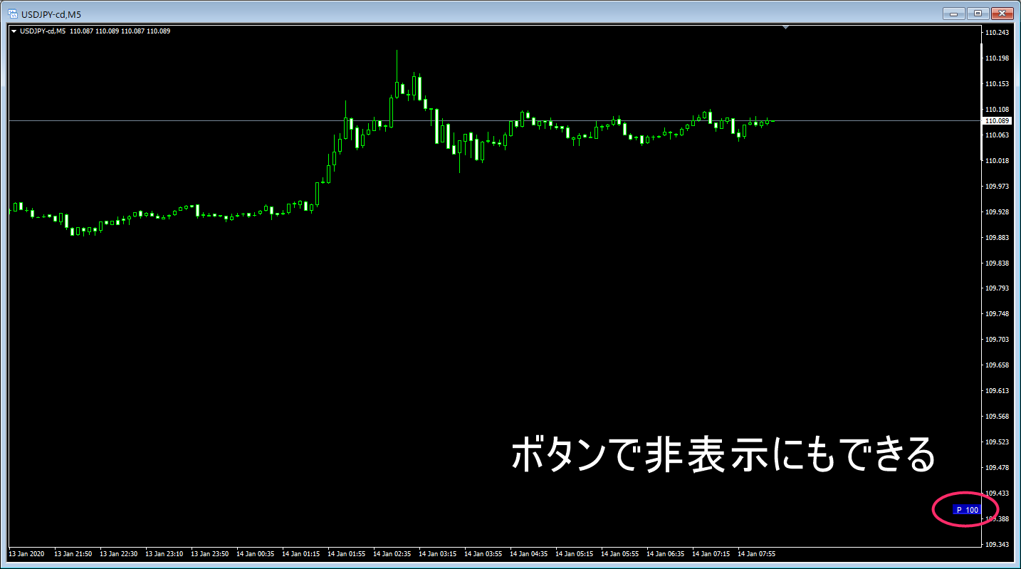 100pipsの10pips前後・50pipsの5pips前後を同じ色にする機能を搭載。