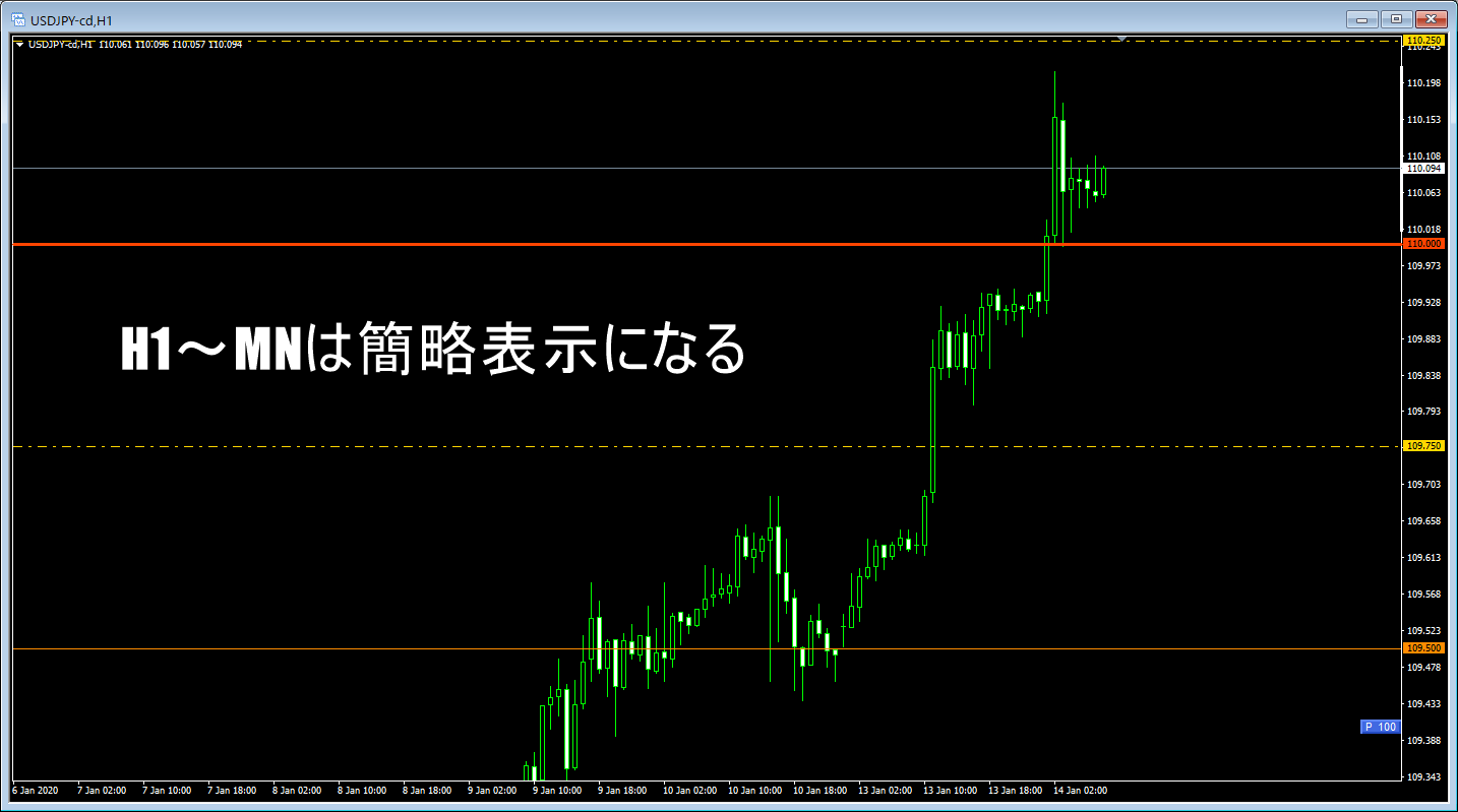 H1以上の時間足になると自動的に線を省略して見やすくすなります。